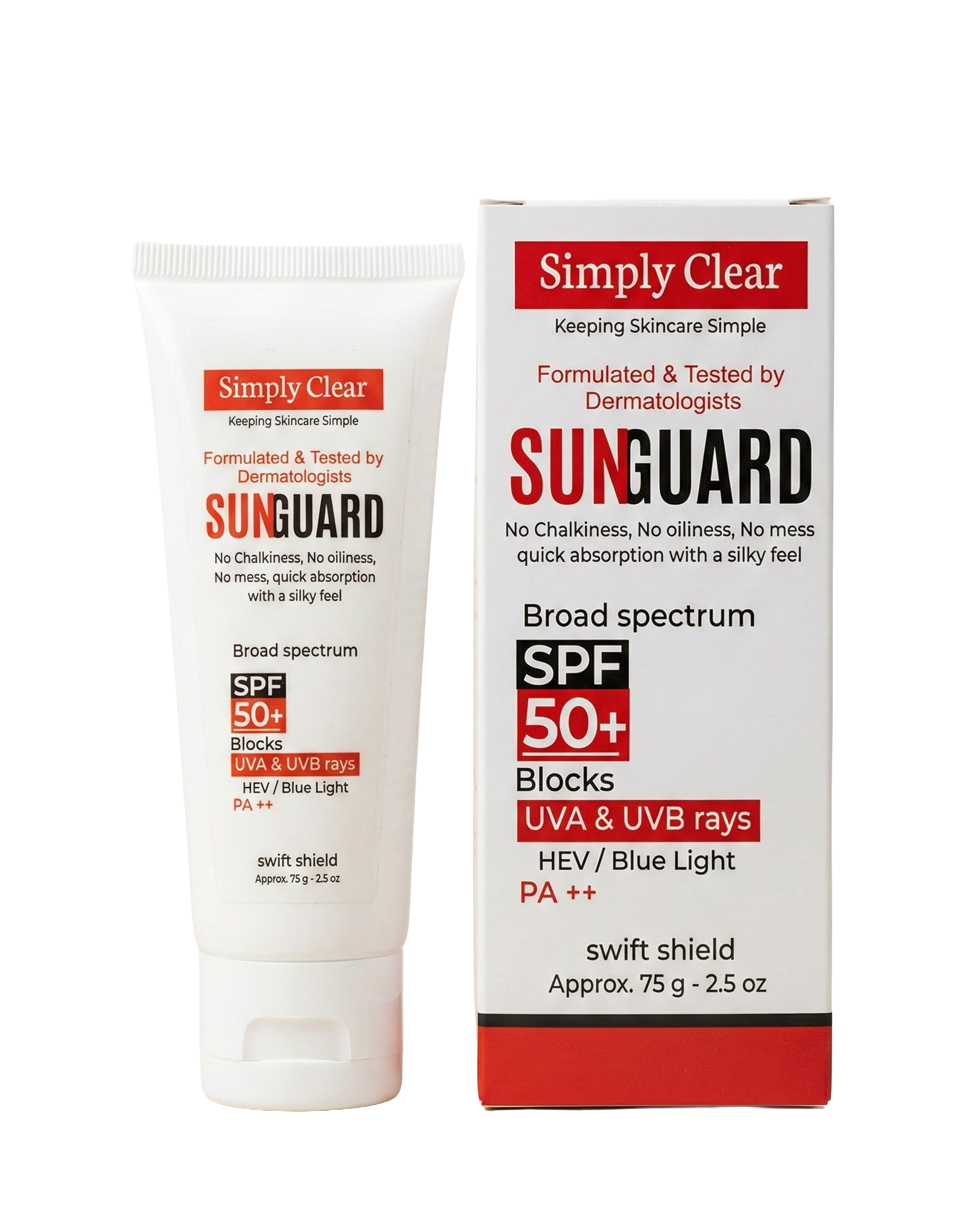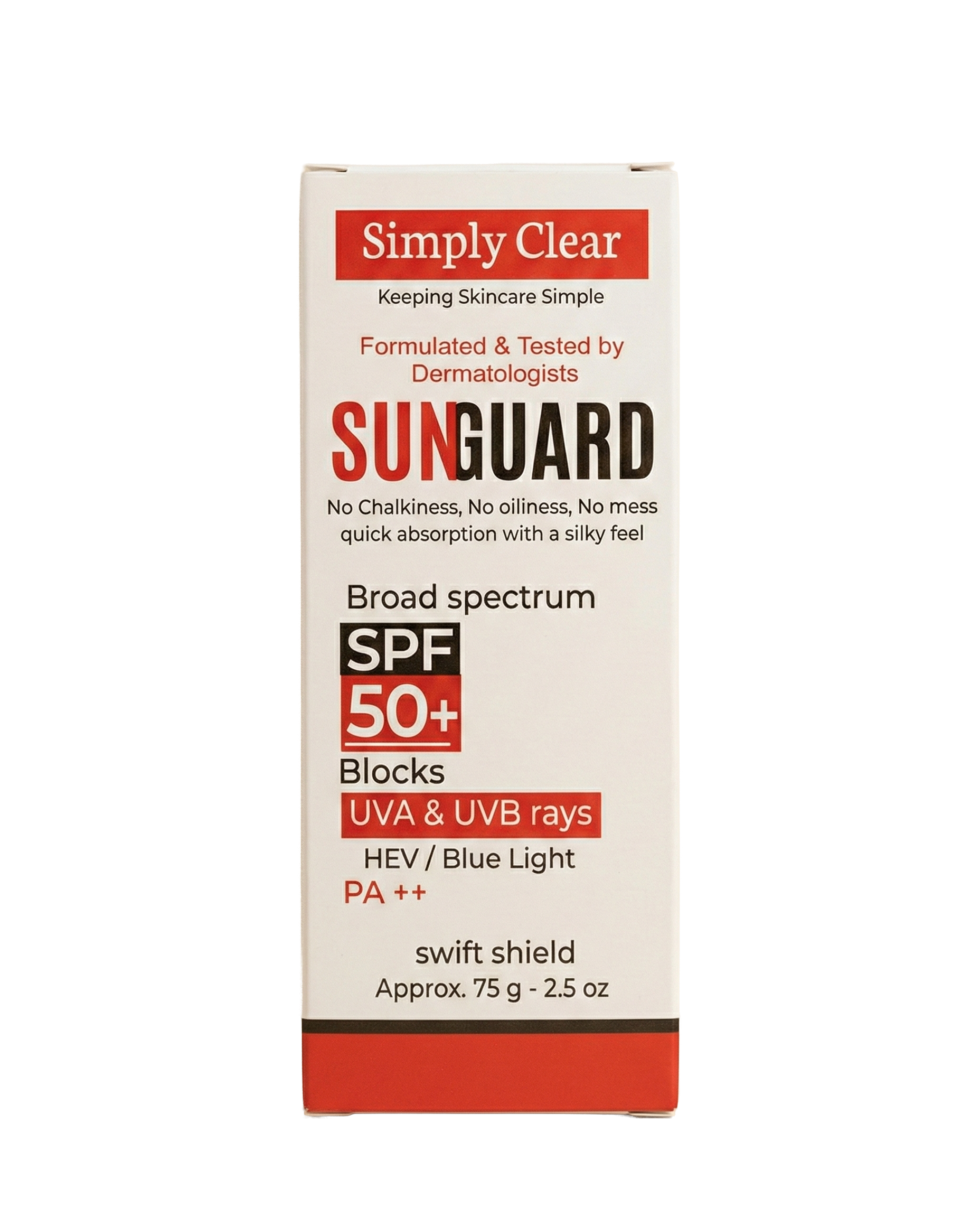 It creates a protective shield on the skin surface that reflects and absorbs harmful sun rays, preventing sunburn and premature aging. It dries down to a non-greasy finish.
